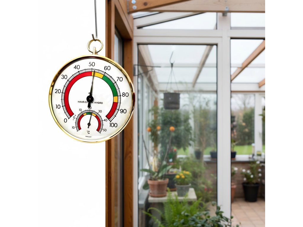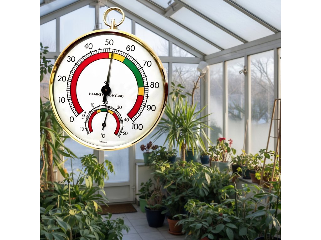 Tento termo-hygrometr je ideální pro měření teploty ve skleníku nebo zimní zahradě. Můžete snadno sledovat teplotu a vlhkost a regulovat je opatrným vytápěním a větráním, když jsou hodnoty mimo stanovený komfortní rozsah, abyste zajistili optimální podmínky pro vaše rostliny. Vlhkoměr je obzvláště spolehlivý díky přesnému "strojku" ze syntetických vláken.