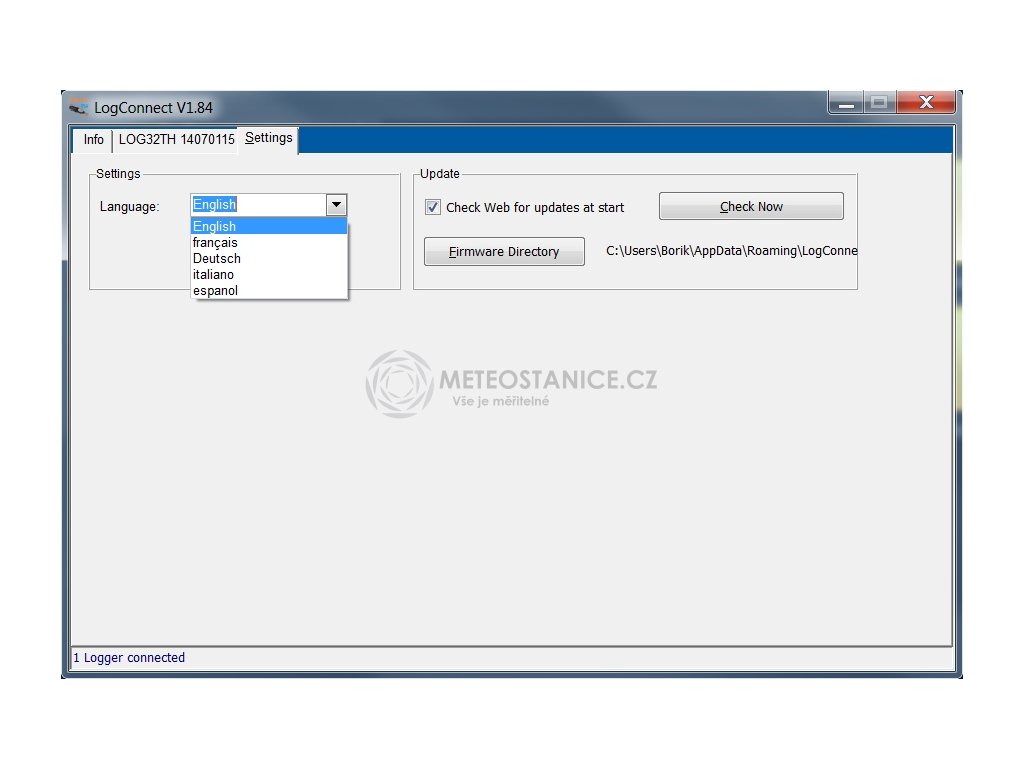 - Pro sledování teploty / teploty-vlhkosti / teploty-vlhkosti-barometrického tlaku (dle zvoleného typu dataloggeru)